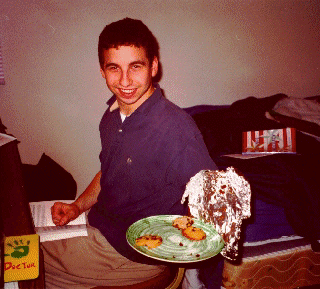 Making an offer of homemade goods to the CookieMonster Eric Ithaca, NY, March, 2001 |